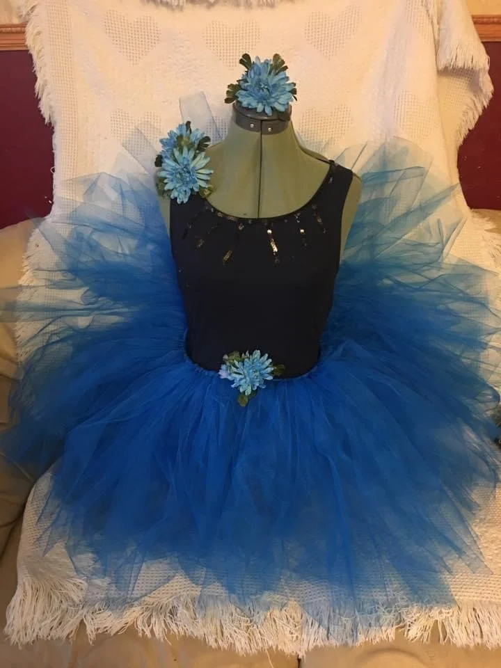 Here is a dance costume I made back in 7th grade. I never wore it but it was my first sewing project for me. I made a tutu and then decorated the tanktop and added the flowers and I was so in love with this costume.